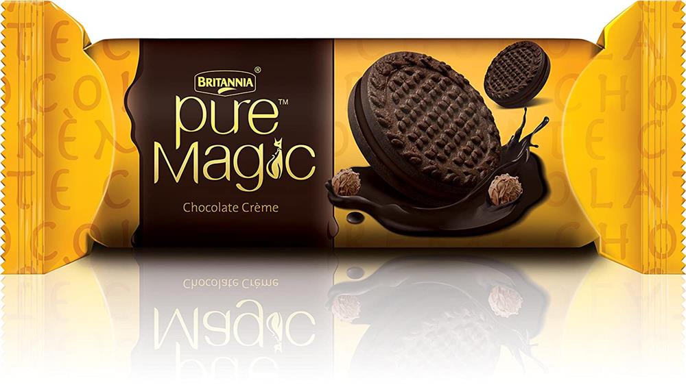 This is a Vegetarian product. Chocolate flavored sandwich biscuits
