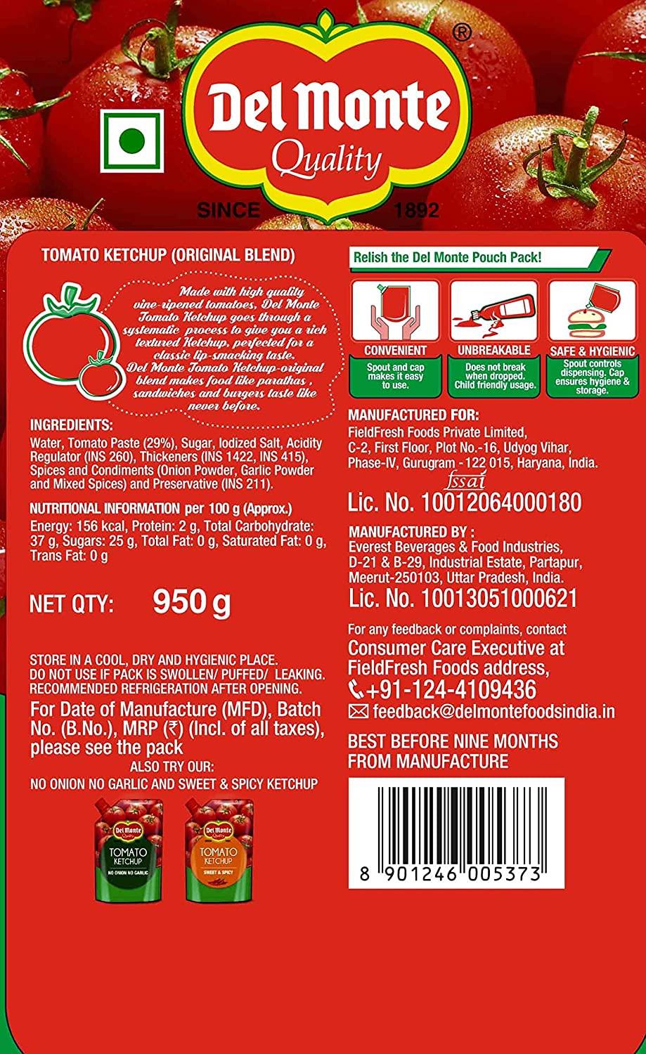 Premium ingredients giving rich and superior taste Blended with ripe vine bright red tomatoes giving it a smooth and thick texture Contains no MSG No added colour Also available in flavours like Sweet and Spicy Tomato Ketchup (1kg) and No Onion No Garlic (1kg) 100% Vegetarian