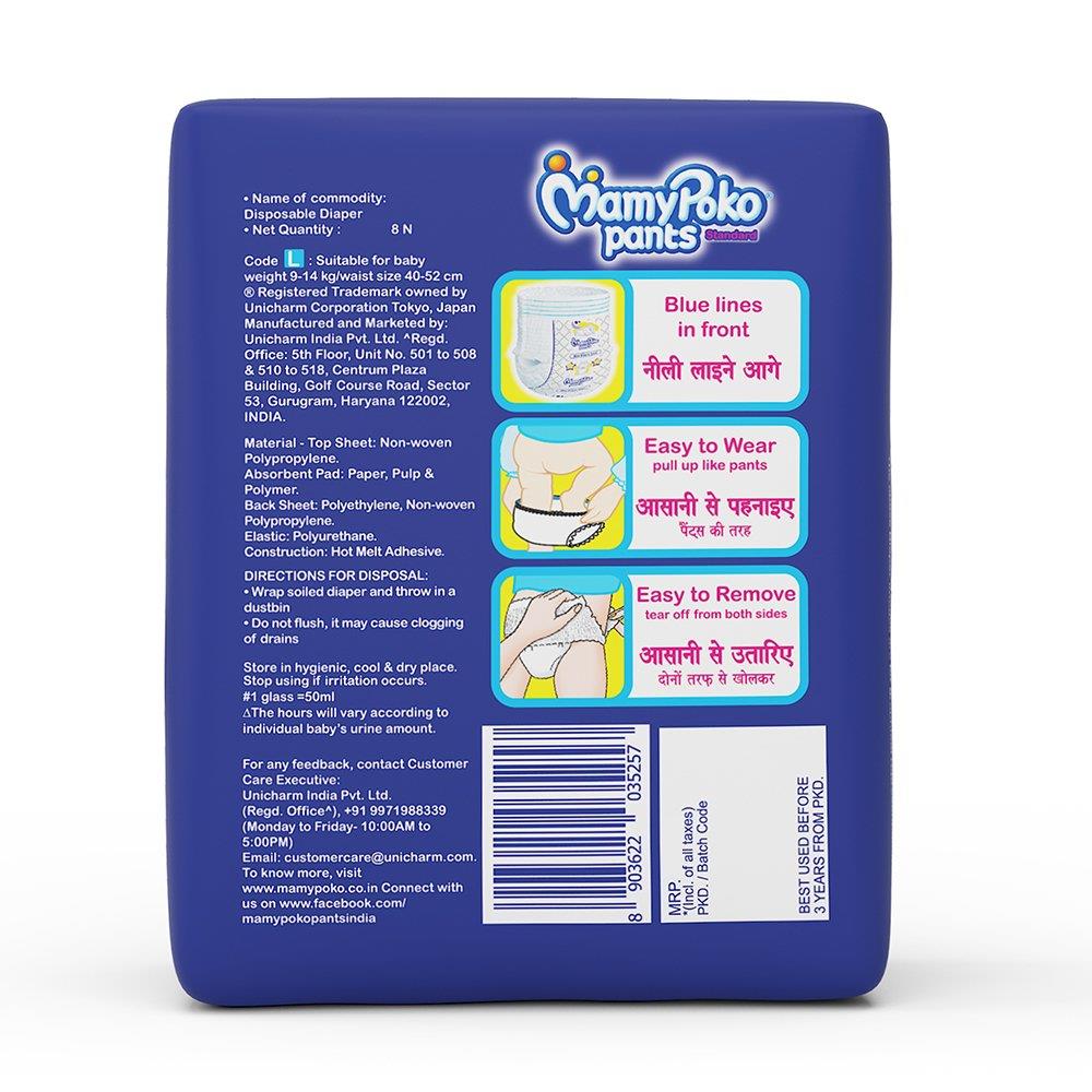 Up to 10 hours of absorption Most affordable diaper Pant style diaper with easy to wear and remove function