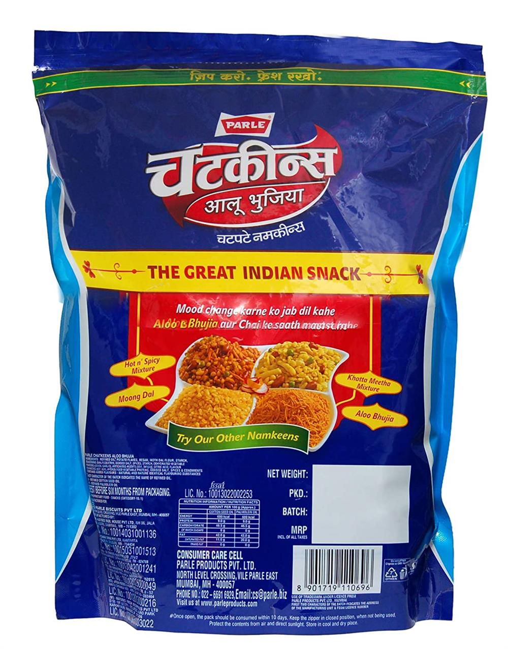 This is a Vegetarian product. Parle Chatkeens Aloo Bhujiya Sev Chatpate Namkeens Reseal & Keep Fresh Pack The Great Indian Snack 1Kg Family Pack