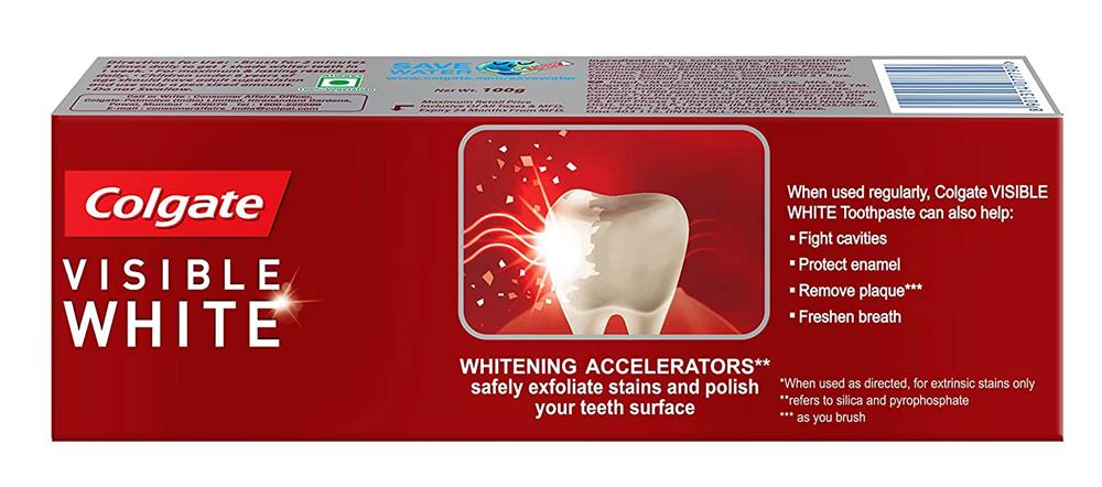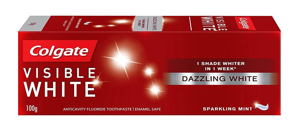 Colgate visible white - the beauty expert in oral care - gives you 1 shade whiter teeth in 1 week* *when used as directed on pack