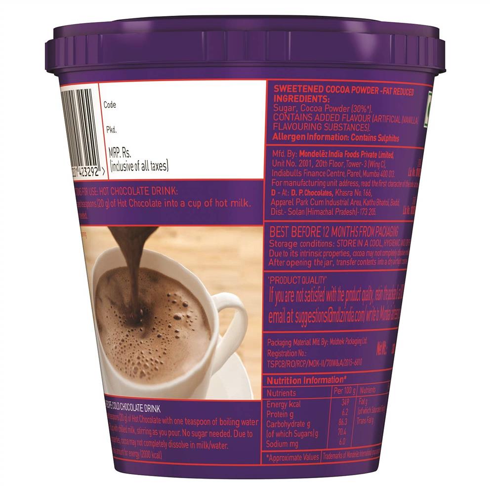 Enjoy the delicious Hot Chocolate for the real Cadbury Flavour Authentic chocolate taste that is a joy to every tongue Perfect way to make milk enjoyable for your children Stir 2 heaped teaspoons (20g) of Hot chocolate in a cup of milk. 1 Jar of hot chocolate serves 10 cups of delicious chocolate drink.