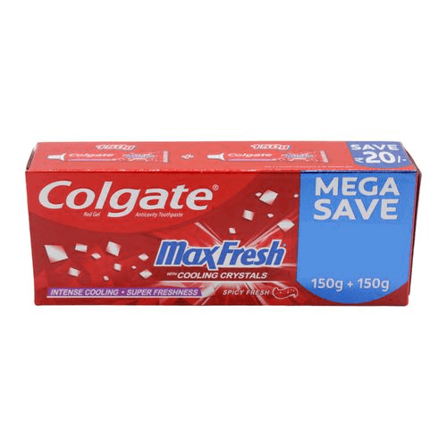 Switch on the power of freshness with Colgate Maxfresh toothpaste that refreshes you and helps you sieze the day because every morning is a fresh start This red gel toothpaste contains unique cooling crystals that dissolve completely as you brush. Colgate Maxfresh gives you intense cooling and a burst of freshness Colgate Maxfresh toothpaste contains menthol that gives intense cooling and super freshness. It fights cavities, keeps germ build-up at bay and makes your teeth whiter on continuous use. It is a red gel with cooling crystrals that provide intense freshness Recommended usage: Brush twice a day for 2 minutes each time. Children below 6 years of age should have adult supervision Good oral care habits keep your teeth and gums healthy, prevents tooth decay, gum disease & bad breath. To maintain good oral hygiene brush twice a day for 2 minutes each time, rinse with mouthwash for 30 seconds, and replace your toothbrush every 3 months Colgate is India's most trusted oral care brand and certified by Indian Dental Association. This toothpaste is 100% Vegan, Sugar-free and Gluten free