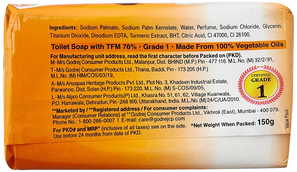 Contains: 4 soaps (150g each) Grade 1 soap with 76% TFM Suitable for all skin types and all age groups Contains natural ingredients - Sandal and Turmeric, known and trusted for skin care The goodness of these ingredients, combined with natural oils, gives you a clear glowing skin Fragrance: Sweet, balsamic, woody scent of sandal