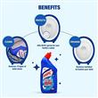 Strategically bent bottleneck shape helps pour the liquid into deep corners under the toilet rim