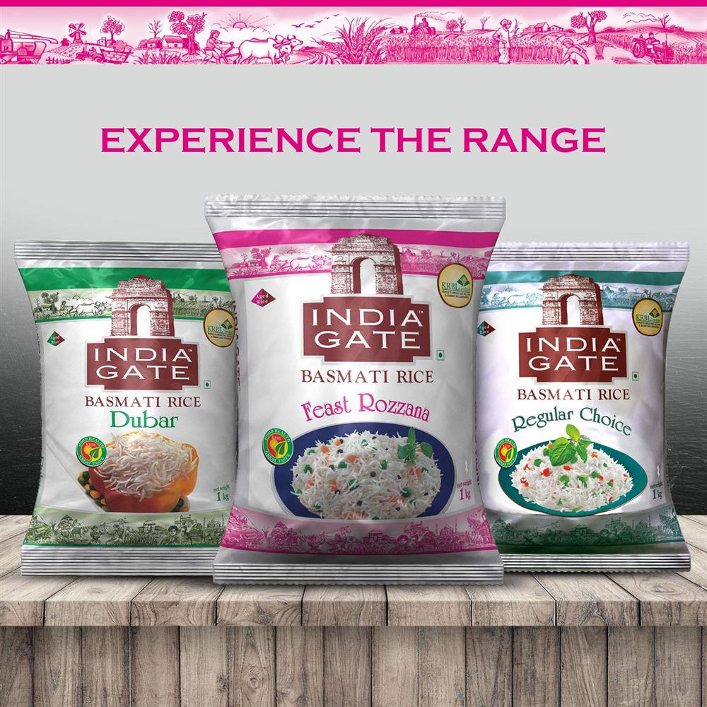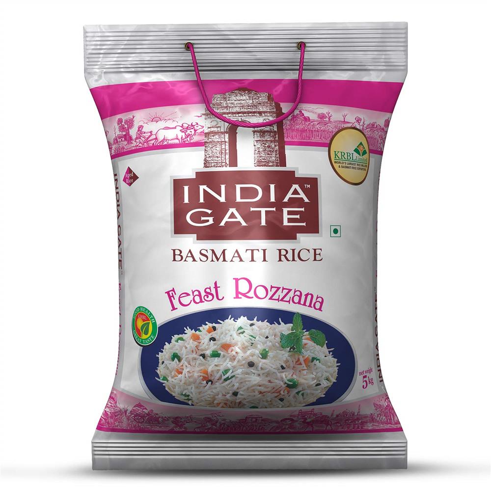 This is a Vegetarian product. India Gate Feast Rozzana Rice is aged Basmati rice for daily use Has Pearlescent white grains that do not stick to each other or break when cooked Has Slender grains with good elongation