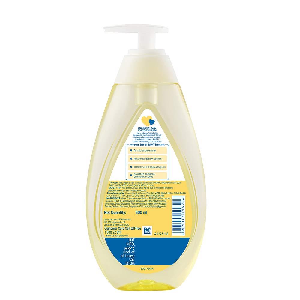 Johnson's Baby Top to Toe bath is as mild as pure water Johnson's baby bath is Hospital's choice for baby's 1st bath Perfectly pH balanced for newborn skin Johnson's baby bath is 100% soap free Hypoallergenic and clinically mildness proven Recommended by doctors No Parabens, No Sulfates, No Dye Every Johnson’s product passes a 5-level safety assurance process and has No harmful chemicals. Maximum Shelf Life: 36 Months Country of Origin: India