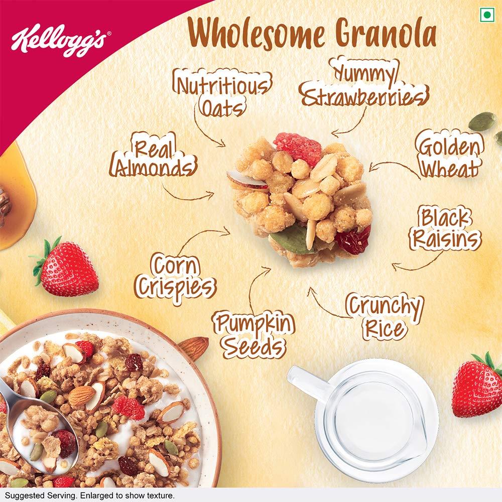 Start your mornings with a bowl of Kellogg's crunchy granola honey, almonds, strawberries & pumpkin seeds for breakfast everyday