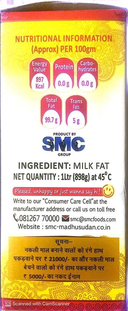 Ingredients: Milk Fat. Offers great health and taste in every spoon. Made from fresh and pure milk. Has rich characteristic aroma and delicious taste.
