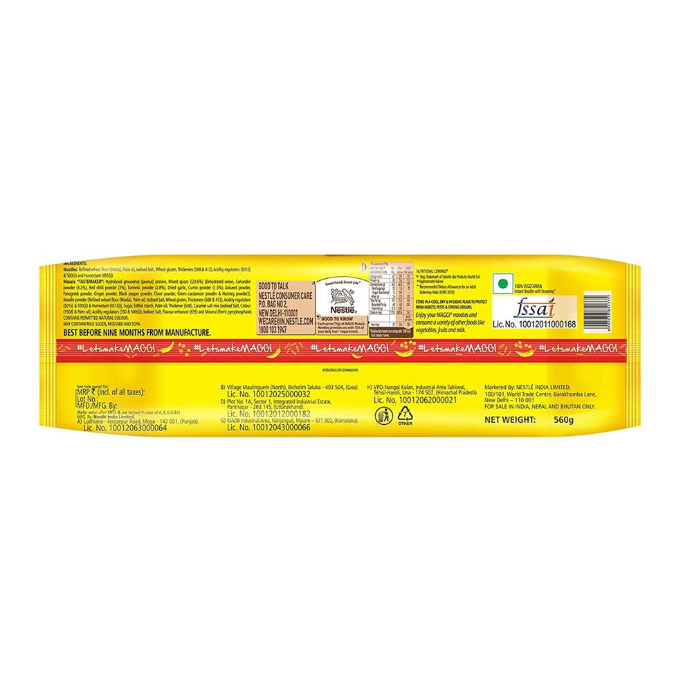 MAGGI 2-min Noodles with your favourite masala taste! MAGGI Masala Noodles is made with the choicest quality spices and ingredients for the taste your heart loves Each serve (70g) provides 15% of your daily Iron requirement* Contains noodle cake & Tastemaker inside for a quick 2-minute preparation. May Contain: Milk and soy. Maximum Shelf life: 9 Months For any queries, please contact_us on: [1800-103-1947]