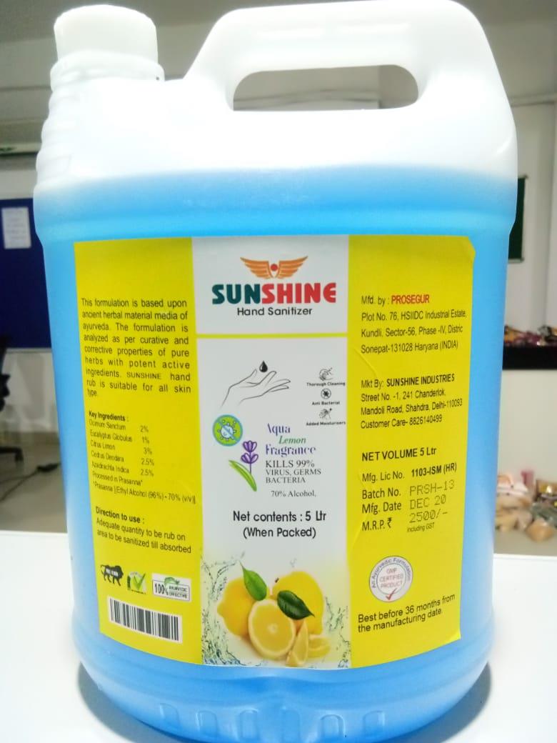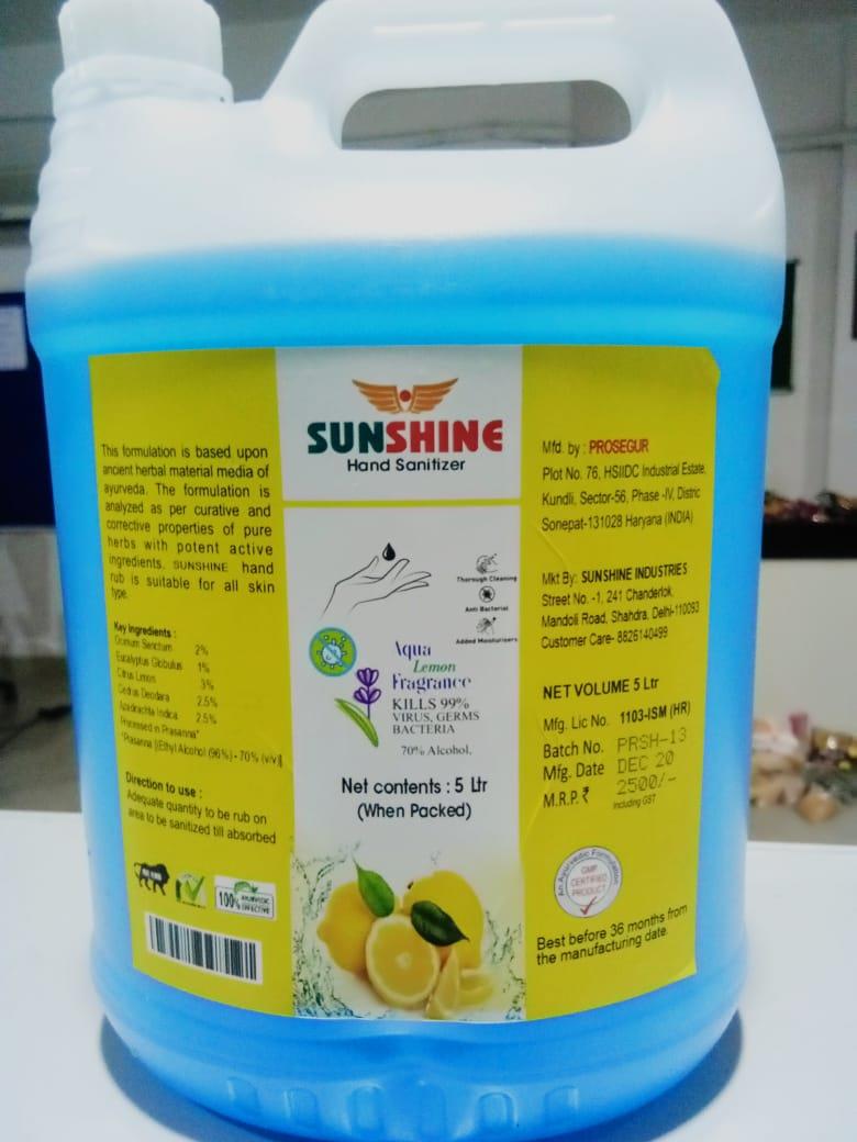 SUNSHINE HAND SANITIZER -5L CAN