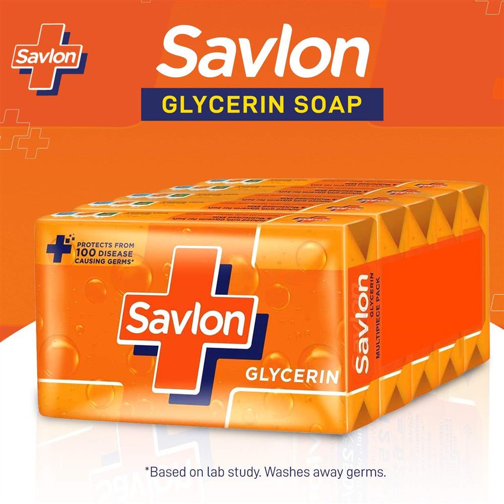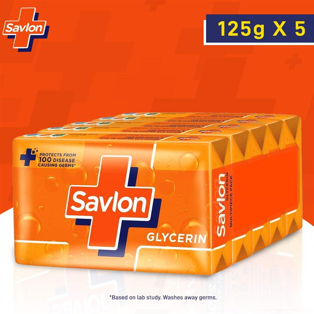Savlon Glycerin Germ Protection Bathing Soap Bar, 125g (Pack of 5)