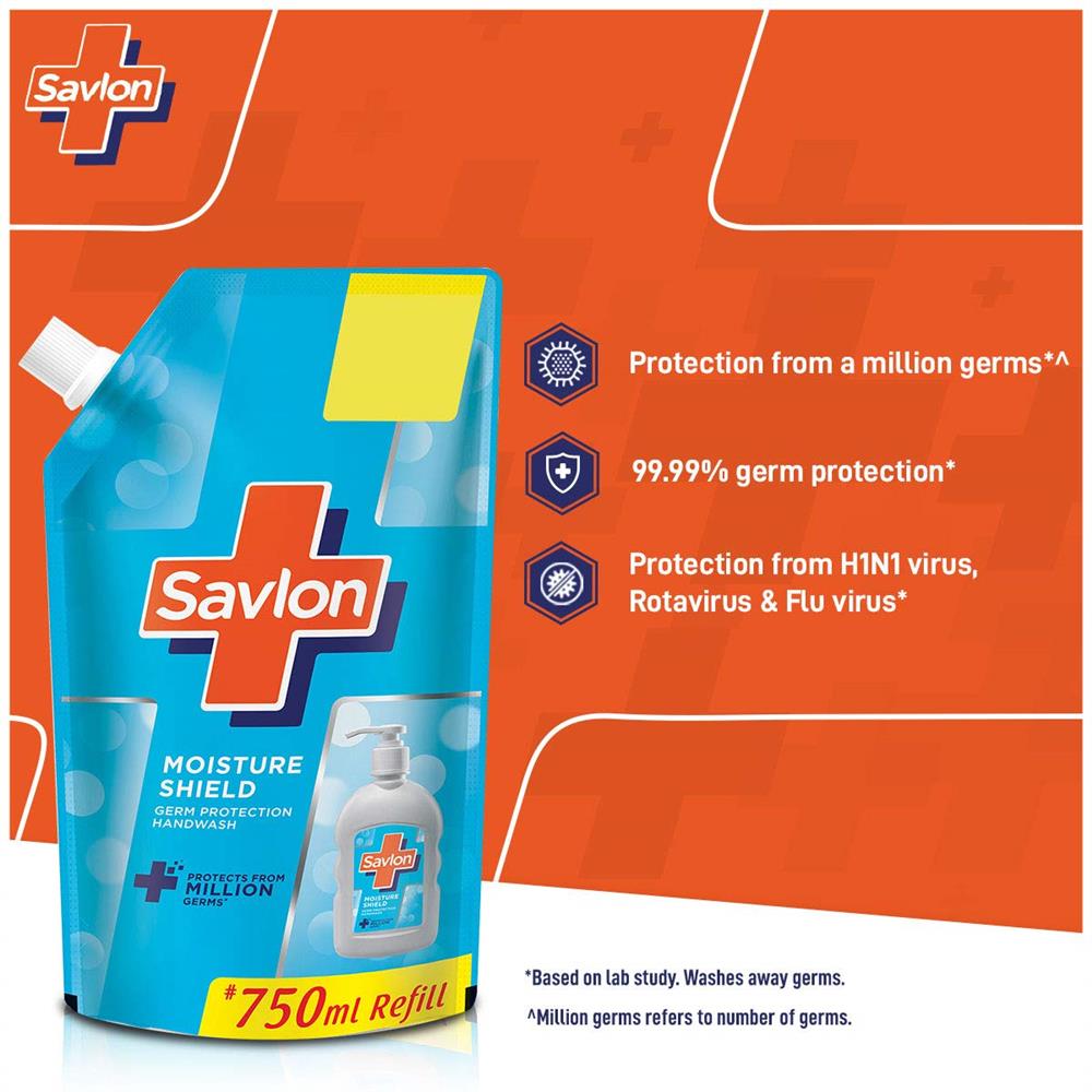 Break the chain of infection with Savlon Handwash that protects from a million germs Also, Protects from the H1N1 virus, Rotavirus, Stomach Flu & Flu virus Savlon Moisture Shield Handwash leaves you with soft, supple, and clean hands, Gentle cleansing coupled with moisturizing benefit. Dermatologically tested, suitable for all skin types, with natural extracts. No TCC. No Triclosan. No Added Parabens. Directions for use: Cut open the pouch and pour the liquid into a handwash bottle, then press the nozzle gently to get Savlon Handwash on the wet hand, wash hands for at least 20 seconds Available in Sizes: 80ml pump, 200ml pump, 500ml pump, 175ml refill, 1500ml refill. Available in variants: Herbals Sensitive & Deep Clean.