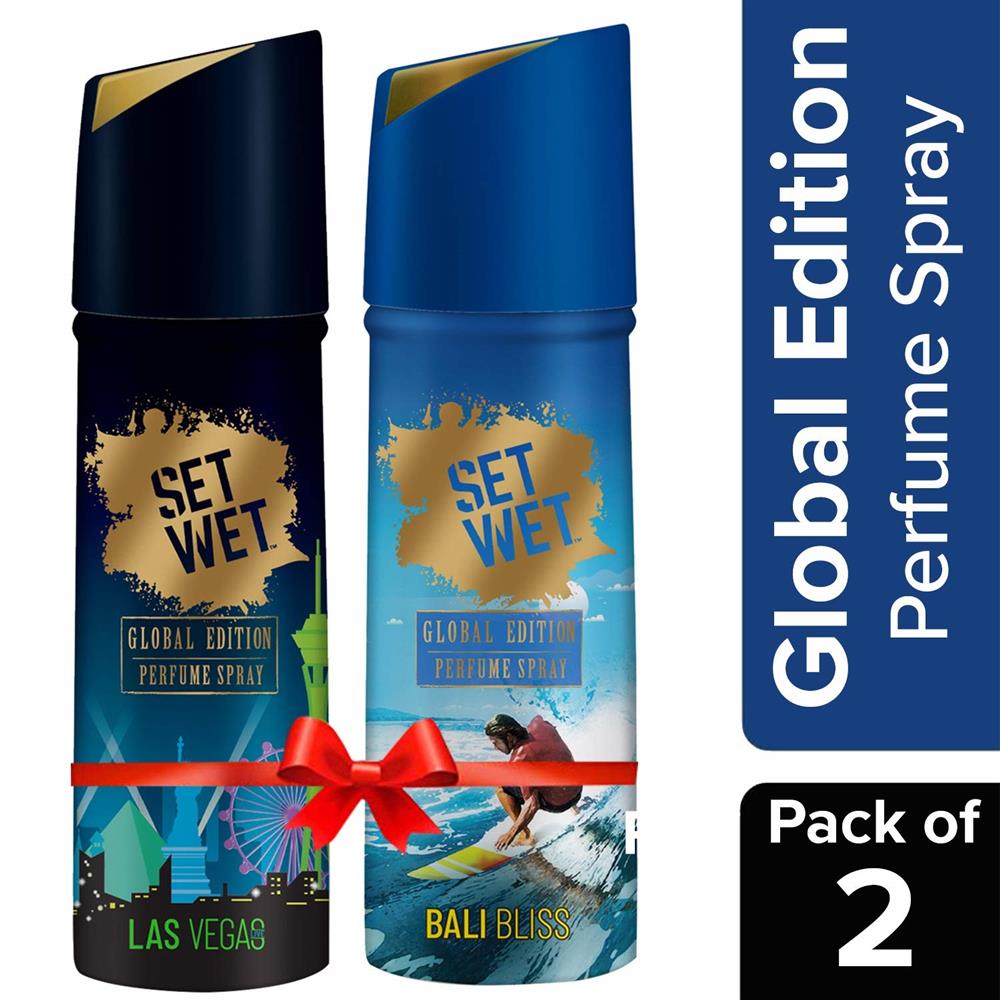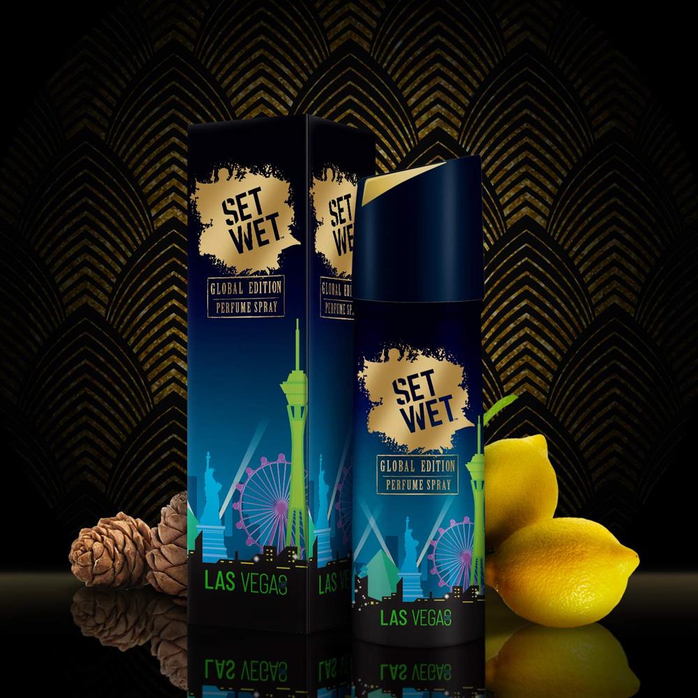 Long lasting, no gas, body deodorants for men inspired by fine fragrances from your favourite destinations. This perfume body spray compliments your masculine appeal all day long, regardless of what you do, where you go. Immerse in cool refreshing splash of Bali Bliss men’s perfume spray. Or, revel in the vintage notes of Las Vegas Live perfume spray for men. No gas perfume, Skin friendly, Suitable for Daily Use. Perfect for your day out, be it shopping, movies or just chilling! Check out the full range of Set Wet men's deodorants and perfume sprays. Maximum Shelf Life 720 Days Set Wet body sprays, deodorants and men's perfume sprays are safe for use on both body and clothes.