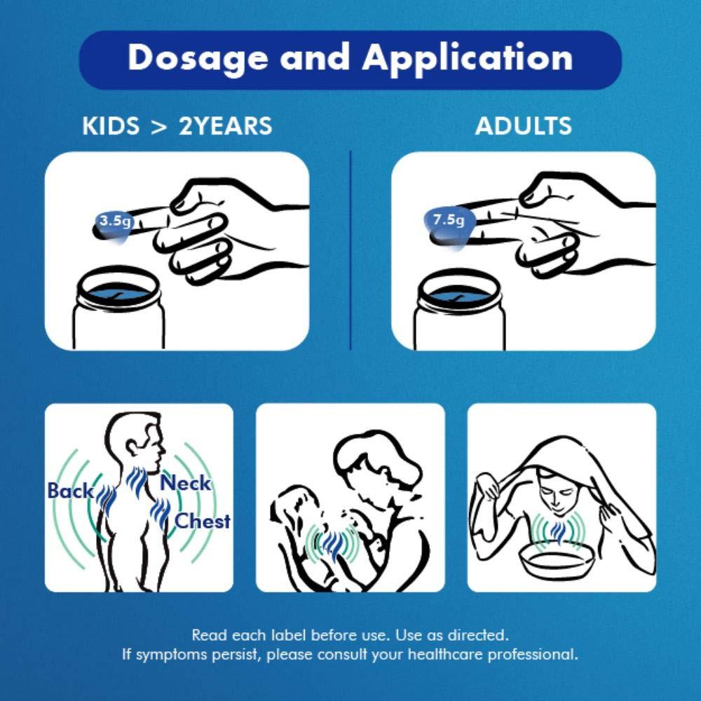 Relief from 6 Cough and Cold symptoms Relieves Cough, nasal congestion, body ache, headache, muscle stiffness Suitable for adults and children above 2 years old Contains natural ingredients like Menthol, Camphor and Eucalyptus Oil